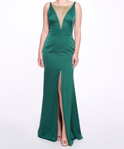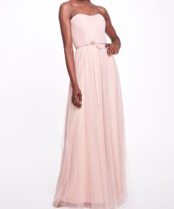 Marchesa Notte Bridal Women’s Eveningwear Dove White V-neck Gown With Draped Low Back | Dove Grey