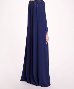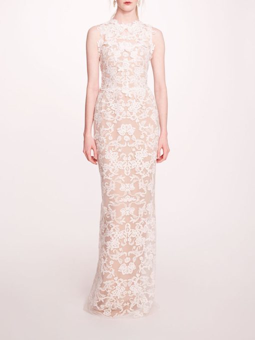 Marchesa Notte Bridal Women’s Eveningwear Dove White V-neck Gown With Draped Low Back | Dove Grey