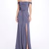 The Adria gown in steel blue late is a full-length draped one-shoulder gown. Featuring ruffle detailing, a long bodice, a stunning leg slit, and a tie waist, this dress is perfect for prom, cocktail, and evening parties.