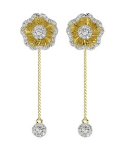 Marchesa Notte Bridal Jewelry Fine Jewelry Halo Flower Yellow Gold Drop Earrings | Yellow Gold