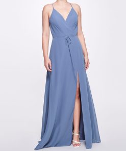 Marchesa Notte Bridal Women’s Eveningwear Steel Blue Adria One-shoulder Velvet Gown | Steel