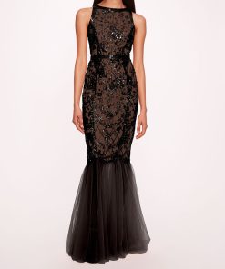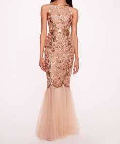 Marchesa Notte Bridal Women’s Eveningwear Rose Grey Tulle Keyhole Halter Neck Gown | Rose Gray