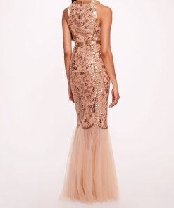 Marchesa Notte Bridal Women’s Eveningwear Rose Grey Tulle Keyhole Halter Neck Gown | Rose Gray
