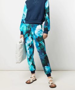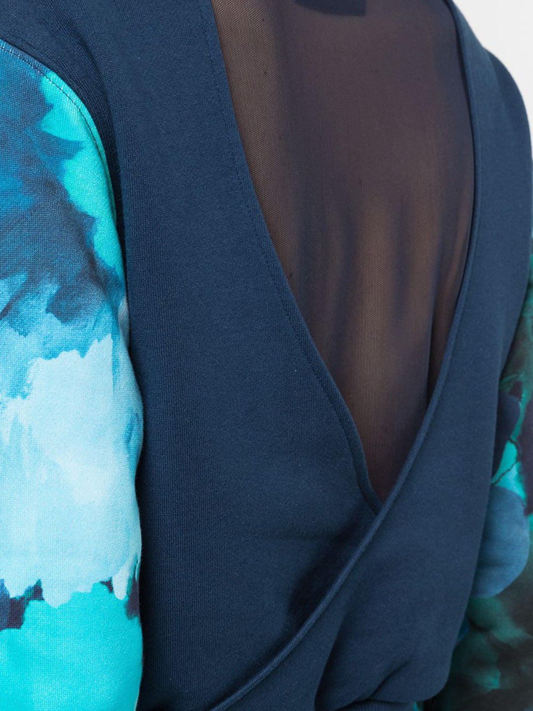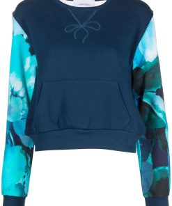 The Wilma Sweatshirt Printed is made of a super soft fleece jersey fabric, a crew rib neckline with embroidered bow detail, dropped shoulder, a blouse effect long sleeve with blouse effect and a relaxed cropped fit. The Marchesa signature painterly floral print mix in navy multi with solid accents and cool tones breathes life into this athleisure piece.