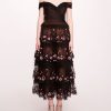 The Barletta gown is a one-shoulder a-line gown. The novelty brocade fabric emits a soft luminescence, making the monochromatic floral pattern pop. The dress is complete with a double spaghetti strap and keyhole detail on the bodice.