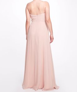 Marchesa Notte Bridal Women’s Eveningwear Blush Pink One Shoulder Two Strap Chiffon Gown | Blush