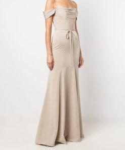 Modern romance becomes an effortless reality in the Rimini gown in champagne. Featuring an amorous pleated bodice, a lush ribbon belt at the waist, and a soft sweetheart off the shoulder neckline.