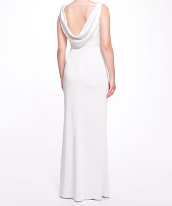 The Turin gown in dove gray was thoughtfully designed. Featuring a stunning draped silhouette, an appealing leg slit, and a beautiful cowl back detail, this dress is simple and stunning.