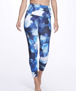 The Crystal Bra features a scoop neckline and ruffled straps that cross in the back. The lightweight and smooth compression fit, ruffle detail sleeves, and the super smooth navy multi performance fabric make this perfect for wearing from the gym to brunch!